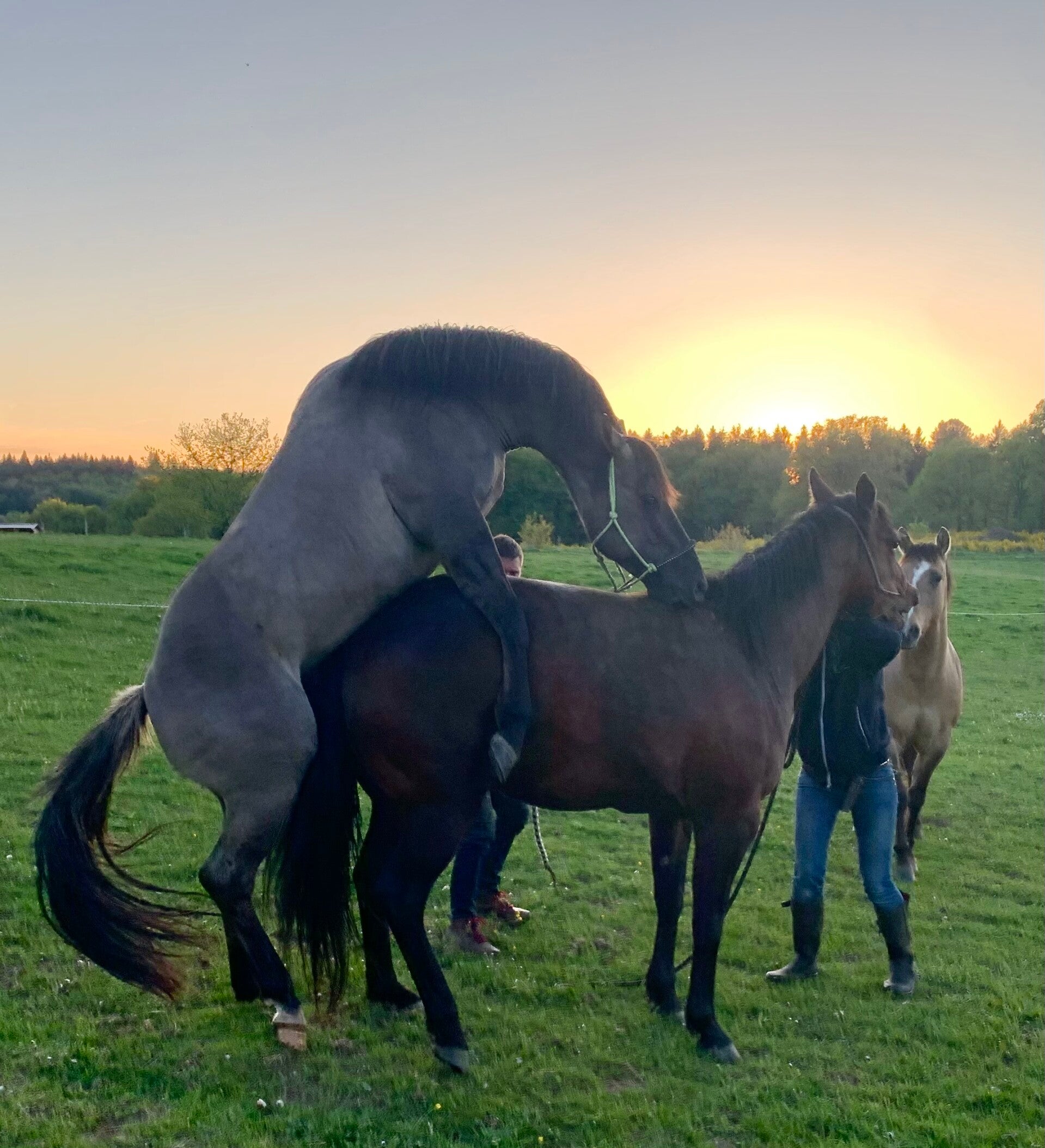 Du côté des amours, les saillies se déroulent en liberté ou bien en main, selon l'âge ou le caractère des juments pour les demoiselles extérieures...