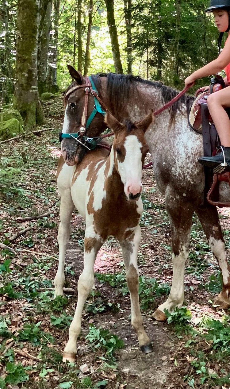 Pieper est née le 29 avril 2025, pouliche américaine OC Paint Horse* Appaloosa, par Kid Sugar Wood et Sweety ! Très grande pouliche bai brown avec un magnifique marquage overo et un œil partiellement bleu, possiblement porteuse splash aussi . Une future compagne de rando, de trail, ou même de repro vu sa génétique et son superbe gabarit !!!